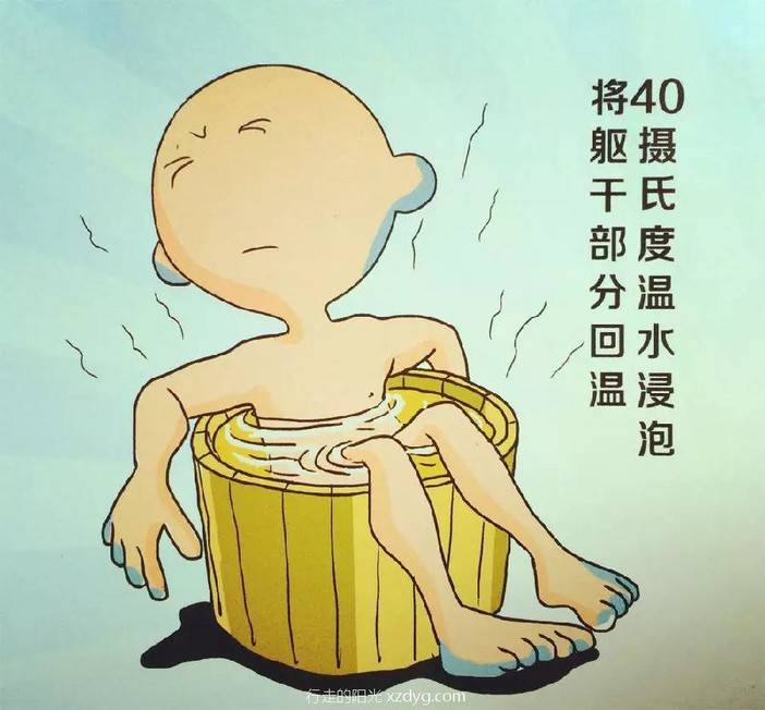 意识模糊、状态比较严重者,采用40℃温水浸泡的方式进行回温