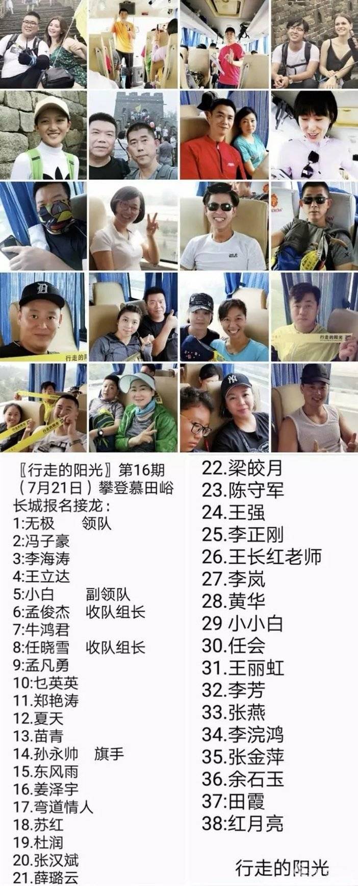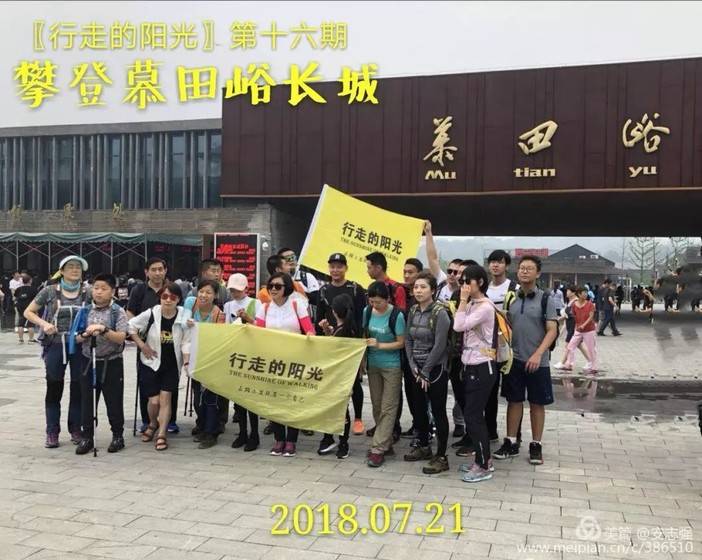 2018年7月21日〖行走的阳光〗户外健身俱乐部第十六期38人团结互相,顽强拼搏,共同战胜酷暑,顺利登上慕田峪长城顶峰。有意义的是攀登过程,一批年轻的国际友人绕有兴趣的参加到〖行走的阳光〗行列,一起攀登,一起娱乐,合影留念,结下了深厚的友谊!