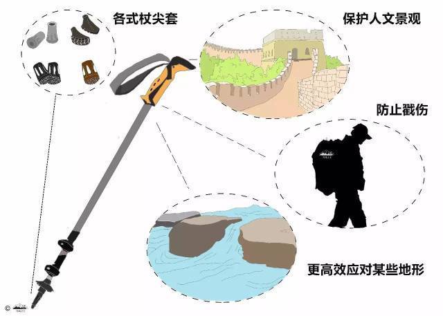 登山杖既非木棒也不是钢棍,它的杖尖刚硬尖锐,但杖身由几节支杆连接在一起,并不抗拉。因此它存在一些安全隐患,需要我们在使用中注意。