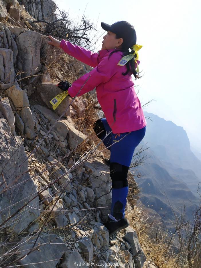 2019年2月23日早上,行走的阳光团队,怀着激动和忐忑的心情进入了狗牙山,故事就这样开始了。 刚刚进山时大家都很兴奋,脚步越走越快,当行走到狗牙山最惊险刺激的狗牙时,看着两面是俊俏的悬崖,万丈深渊,牙尖上有的地方甚至只有一个人通过,大家的心情都很紧张,领队东风雨不慌不忙地鼓励大家说:“大家不要怕,不要胆怯,这是网红路线,行走爱好者们不远万里来到这里,挑战自己,我们应该为我们今天勇敢挑战狗牙山而感到骄傲和自豪!下面我来安排一下,大家分成几个小组,每个小组都有特种兵男神 、女神们为大家保驾护航,请大家勇敢挑战自己!……”无极领队带领第一小组率先登上狗牙,行走中有恐惧的、恐高的、腿打颤的,还有爬着的、蹲着的、坐着的各种姿势,勇敢、坚强的经过了第一道狗牙,大家欢呼雀跃,呐喊声响彻山谷,回荡悠长。在这里勇士们照了集体照,留下了宝贵的瞬间! 下午时分,经过几道狗牙的攀登,为爱奔跑队员的膝盖出现了不适症状,东风雨安排了两位男神蜂鸟和大雪帮助和保护为爱奔跑,虽然每经过一道狗牙都非常艰难和痛苦,但是为爱奔跑坚强勇敢地面对困难,经过一次又一次的调整心态,不断地补充水分,最终挑战极限完美成功! 行走的阳光里有一位队员叫仲志康,他把平生第一次行走交给了行走的阳光团队,而且还是B+级活动,勇气可嘉!行走的路上,开始还斗志昂扬,下午就有些体力透支了,这时他不断地问:“姐姐,还有多远?还有几道狗牙?……”欣然队医这时候冲在前面为仲志康开路,不断地鼓励他加油:“还有一道狗牙,前面还有500百米,加油,天快黑了,加快速度,你是最棒滴……”还把仅有的苹果让仲志康慢慢吃下,补充水分。手拉手协助攀爬,共同前进!一幕一幕感人瞬间震撼着我,激励着我! 我坚信通过这次狗牙山挑战极限,大家一定是今生今世最难忘的经历,也是金钱都买不到的人生宝贵财富!勇敢和坚强精神,伴随一生,无论再发生什么困难都不会气馁妥协!定会勇往直前!这就是“行走的阳光”精神!这就是“行走的阳光”团队的魅力所在!这就是“行走的阳光”户外行走的意义! 让我们为自己挑战狗牙山完美成功点赞!为参加挑战的男神女神们点赞!为我们收获开心快乐,收获健康,收获人生宝贵财富点赞! 让我们携手行走的阳光在路上,发现另一个自己!勇往直前!2019年2月24日追梦人