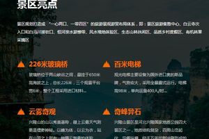 游客中心→好汉坡→将相迎客→悬空餐厅→236米玻璃桥→四方洞→会鹊桥→天街美食街→自动扶梯→百米电梯→好汉坡→游客中心