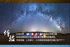 怀着激动的心情,退下沙丘,奔赴前路,未来也许不再迷惘,也不再孤单,沙漠这片天地,你曾不留遗憾到达过,地图上的远方,到达前只靠想象,带着简单的行囊,怀揣热血心脏,翻几座沙丘,看火红的夕阳消失在某个地方,看命运透出了霞光-人生是一次热血的流浪!