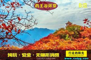 这里的野生中草药资源丰富,约200余种常见中药材。药王谷不单可以学习知识,药王谷秋天的枫叶也是非常迷人的。峰峦雄伟的山中透露着醉人的柔情。红叶随风起舞,尽情地向人们展现它的飘逸与灵动。那被深红、浅黄点染的树林为这片迷人的土地书写着一片片诗意。枫林如火,漫山红遍,宛如一幅美丽的画卷。登高远望,甚为壮观,景色十分迷人。