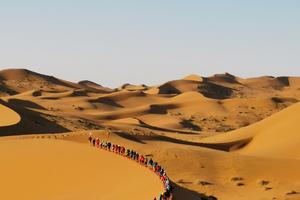 初次见到沙漠,大家都很激动,但要记住先去适应,也不要怕会走不完全程,我们的线路经过专业的设计,徒步计划也是根据人体状况来安排,我们往期的队员中,最小的有5岁半的小朋友,最大的还有75岁的,都成功完成了全程,所以说,只要你认真听从我们的专业领队指挥,穿越腾格里就不是什么大问题。