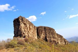 棺材山位于北京市房山区以西30公里黄山店村。顾名思义,棺材山外形怪异,远观真如一口巨棺横卧于群峰之间。想来当地村民觉得棺材山这个名字不符合老祖宗传下来的风水学说,所以改了个谐音,巧取升官发财之意,又因为从山下某一个角度看去,山势变化,外观貌似一顶古代官帽,又取了个更加隐晦的名号,叫棺帽山。袁宏道一句“山风吹晓做新岚,仙梦茫茫古石龛。欲识死生情切处,棺材峰上卓峁庵”便已让此山逃离了吉祥与否的争议,淡淡的哀伤隐藏在浓浓的浪漫情怀里。