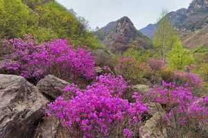 黄梁根村位于北京市密云区冯家峪镇以北14公里处,地处燕山山脉腹地,依托峡谷地形形成独特的自然景观。村中映山红峡谷以野生杜鹃花闻名,每年4月中下旬至“五一”前为盛花期,漫山杜鹃花海如锦似霞,花株高度从几厘米至数丈不等,红粉交织的花朵点缀山野,与湿润清新的空气共同构成“江南丛林”般的视觉盛宴,成为京津冀地区春季赏花热门目的地,在黄粱根村的郝道峪沟有两座大山,两山相隔六七丈,山脚下有两个石窝窝,相传这两个石窝窝是二郎神挑山时留下的“扁担窝”。