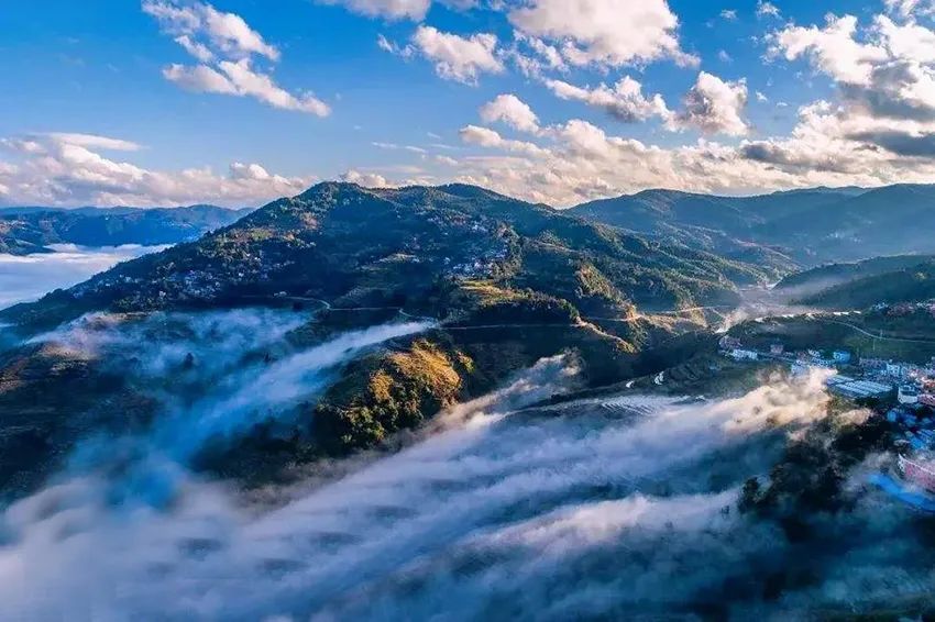 【哀牢山云海】非常壮观。这里独特的低海拔河谷的暖气与高海拔沿山下滑的冷空气相遇,一年四季你都可以观赏到宛若仙境、如梦如幻的云海,尤其是在秋冬两季,云海蔚为壮观。可以看到云海的翻滚、奔涌、群山、云海时隐时现,极目之处,气象万千。