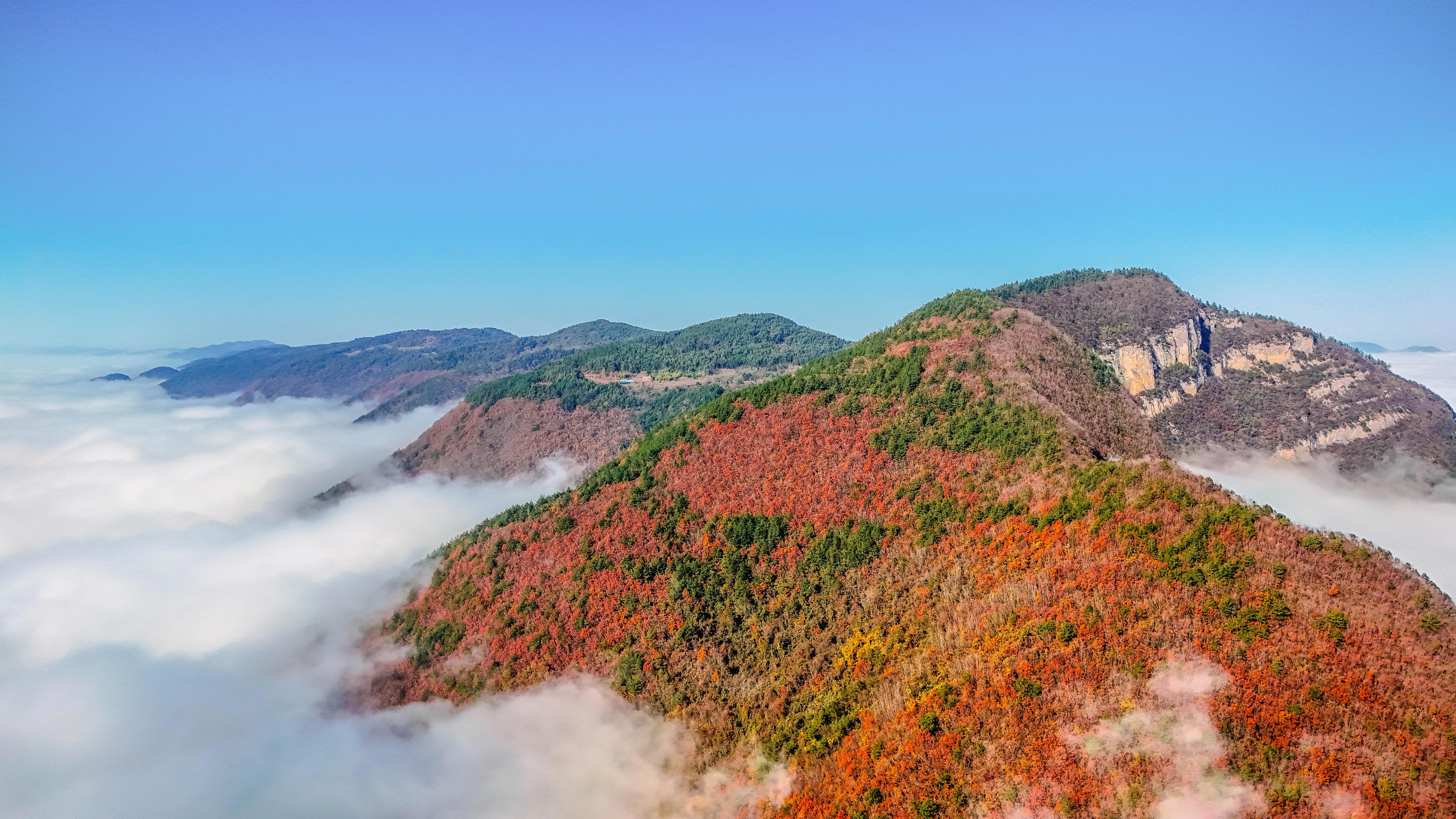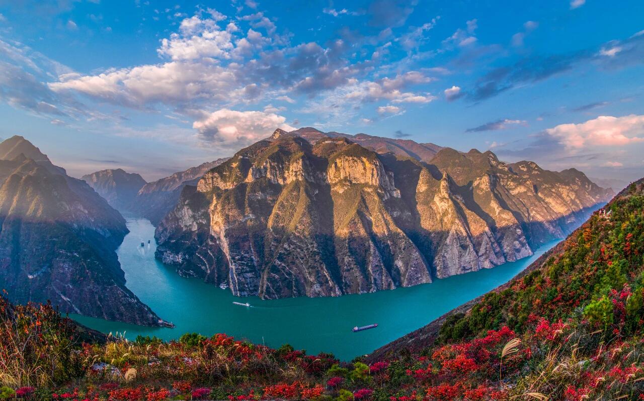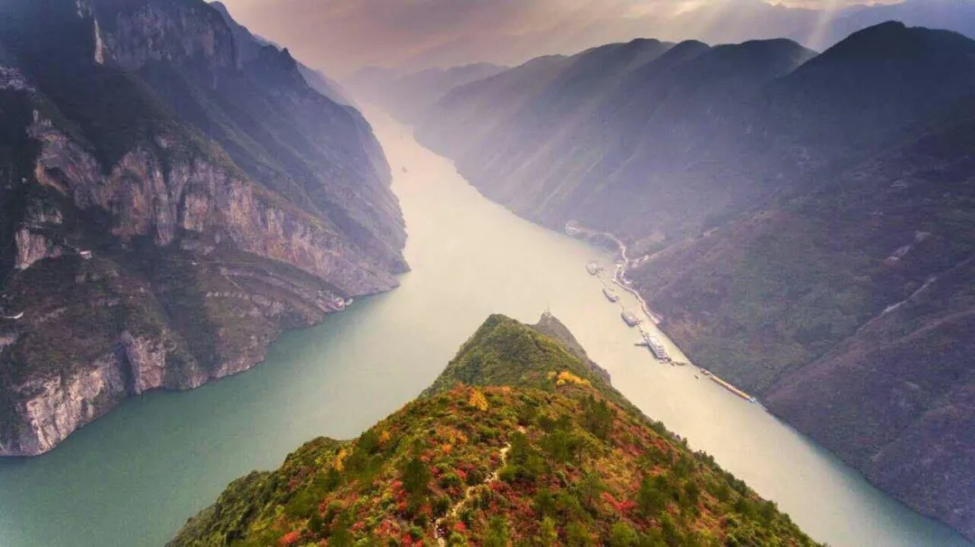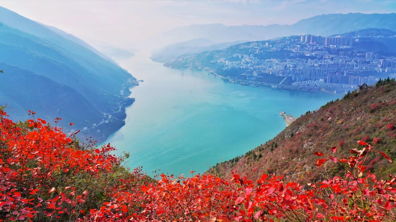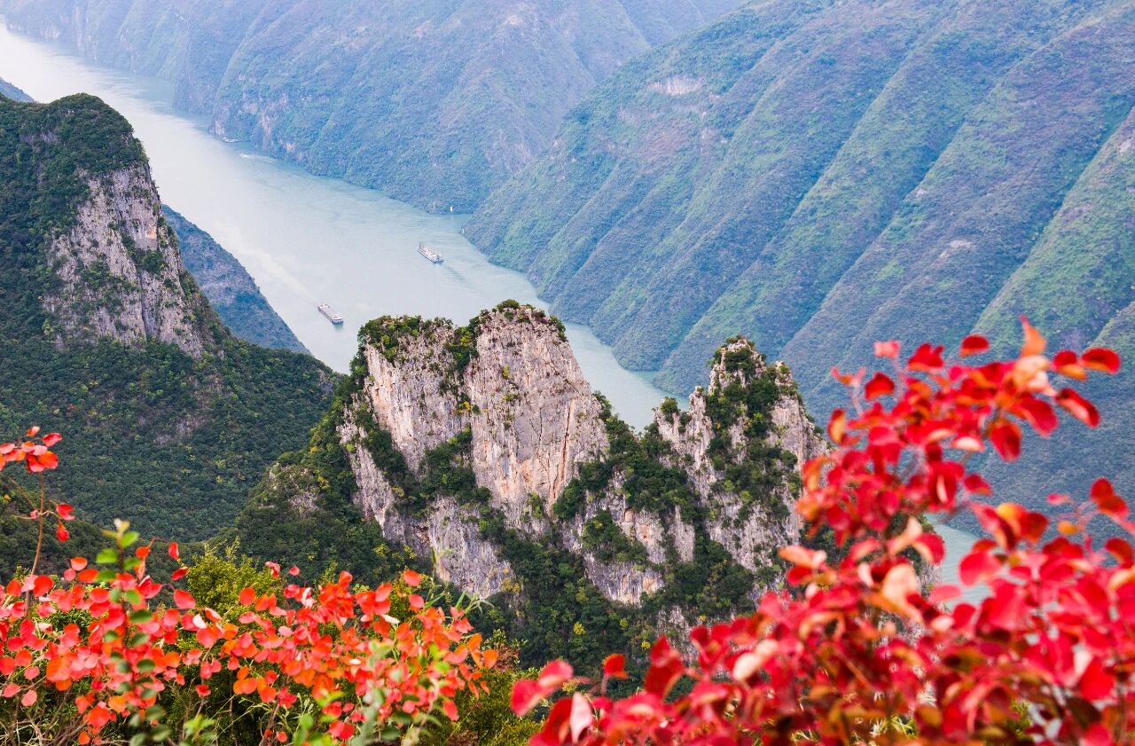 十一月的三峡,是一幅被时光浸染的立体画卷。抬头望,乌桕、黄栌、枫香交织成层叠的红色云霞,从浅绛到朱砂,从橙红到胭脂,每一片叶子都像是被夕阳吻过的火焰,在青灰色的岩壁上跳跃、闪烁。低头看,碧玉般的江水蜿蜒穿过黛色山峦,波光中倒映着红叶的剪影,宛如一条流动的翡翠丝带,将两岸的炽烈与山间的清冷温柔缠绕。行走其间,每一步都踏在千年水墨的韵律上——时而穿过悬空栈道的惊心动魄,时而驻足观景台的静谧凝望,仿佛能听见历史的风声在红叶间低语,看见诗人的笔墨在岩壁上流淌。