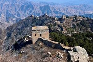 唐子沟长城所在山峦怪石嶙峋,犹如散落在漫山遍野的一颗颗石珠,密集的敌楼珠连成串,盘踞在巨石山上,气势磅礴,令人叹为观止.唐子沟长城基本是就地取材以石块砌成,敌楼则采用制式较小的青砖砌筑,以石灰填缝(涞源的石灰石资源十分丰富),这或许就是唐子沟长城保存较为完好的原因之一.