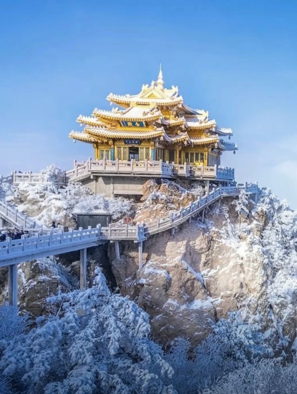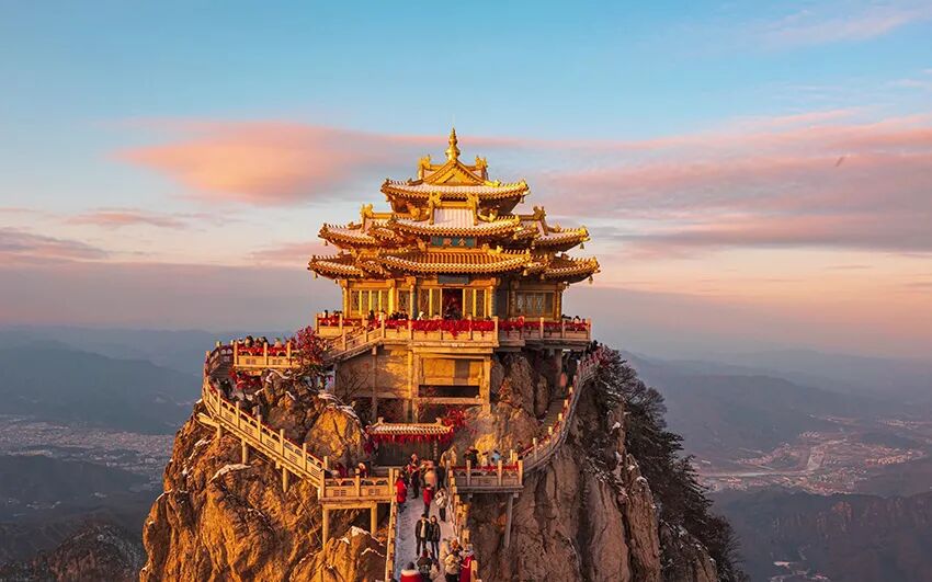 老君山不仅仅是有着2000多年历史的道教圣地,更有现今规模最大的庙宇老君庙,抬头猛然现身的老君庙金顶,犹如人间天宫般,神圣、圣洁、禅意十足。