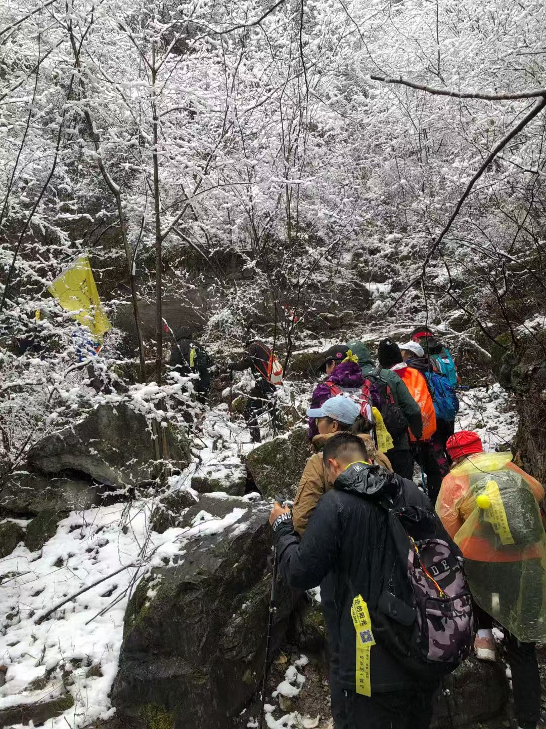 2、强制装备:保暖衣物(冲锋衣+抓绒衣或羽绒服)、速干衣裤、雨衣(常备)、登山徒步鞋、小型双肩背包、身份证;