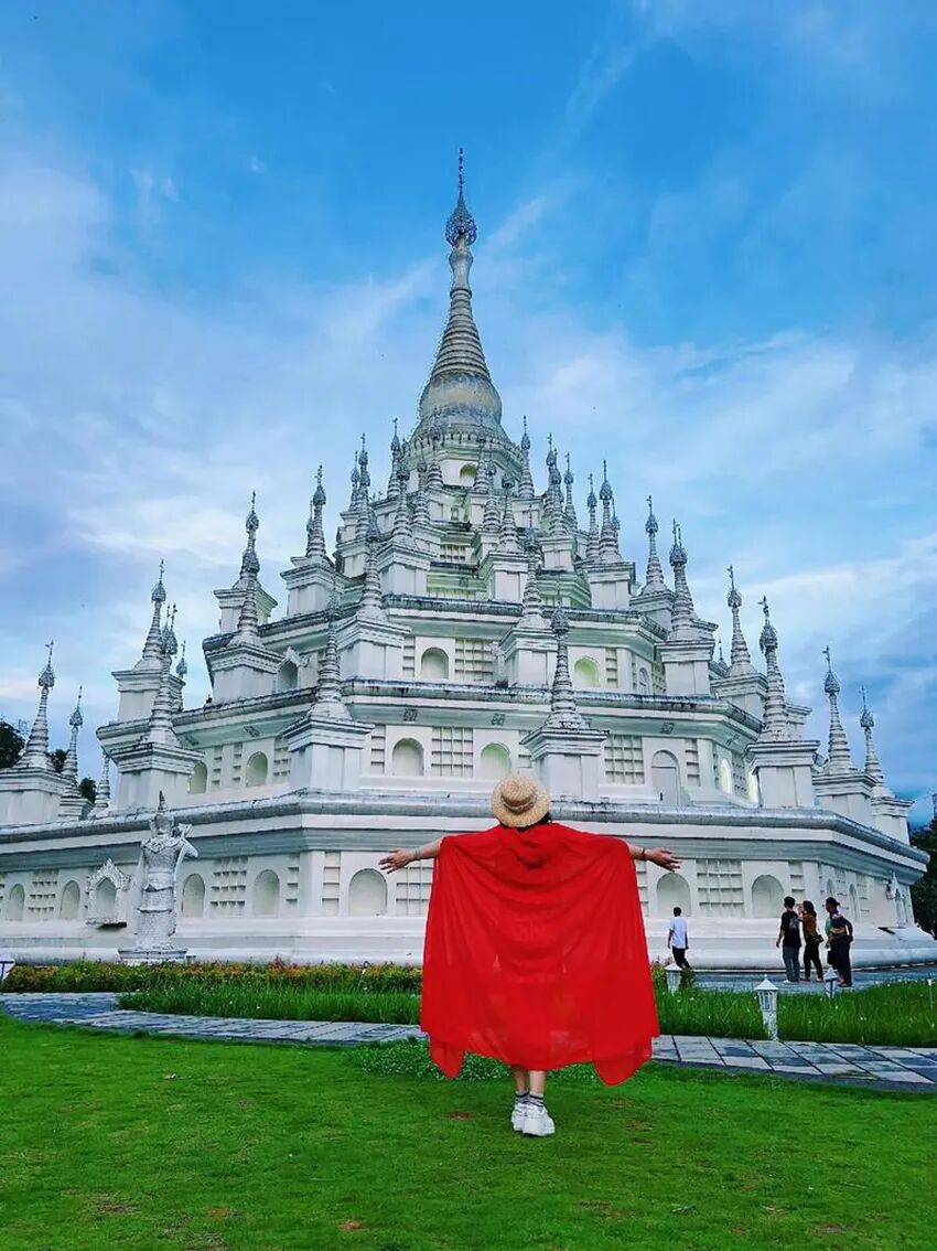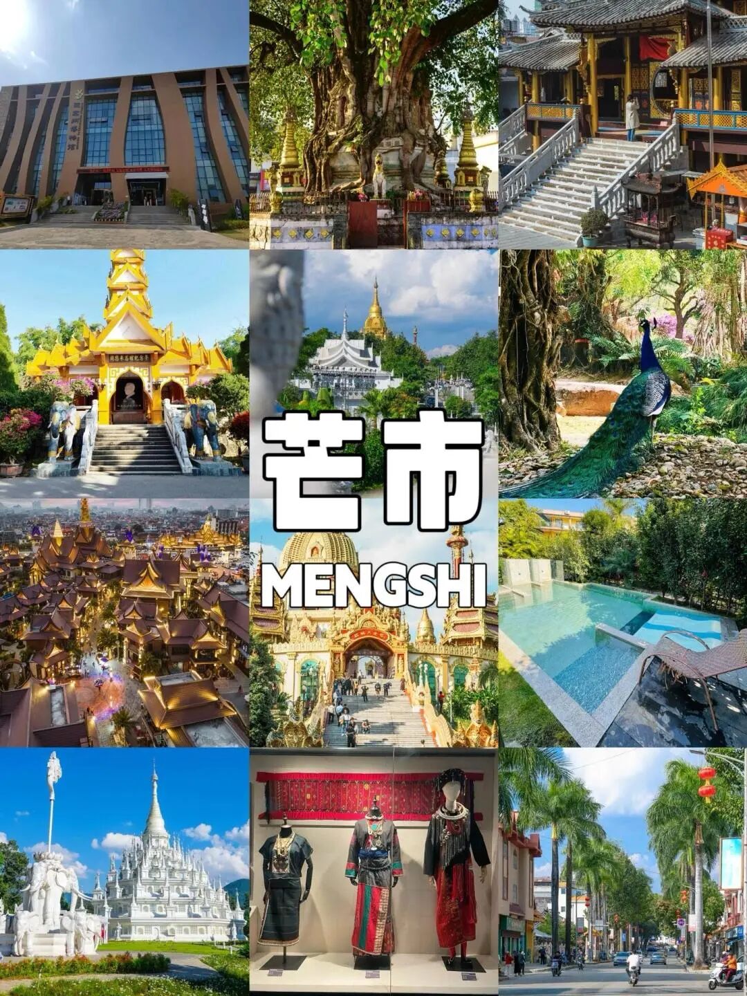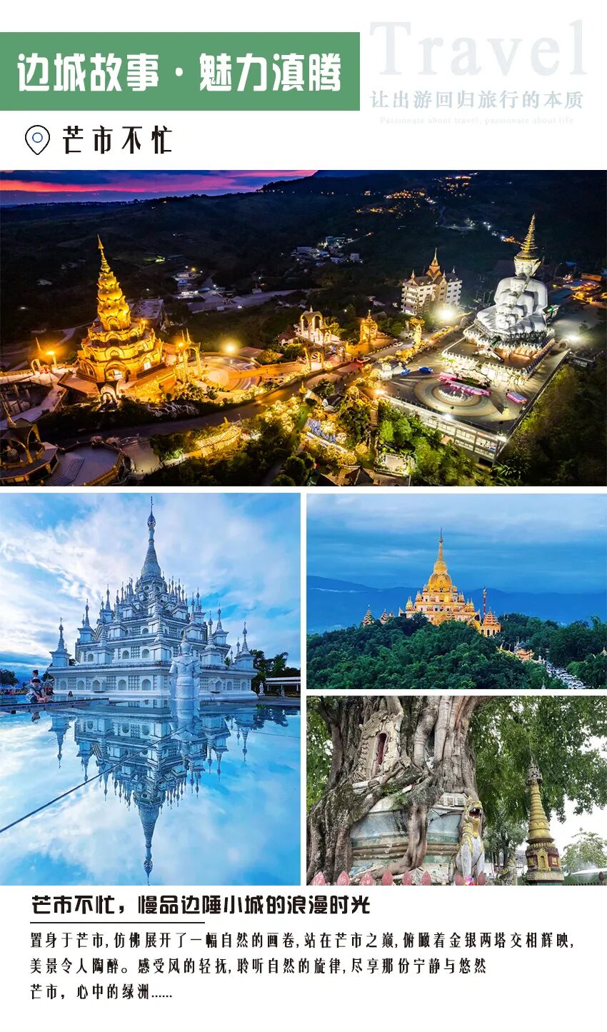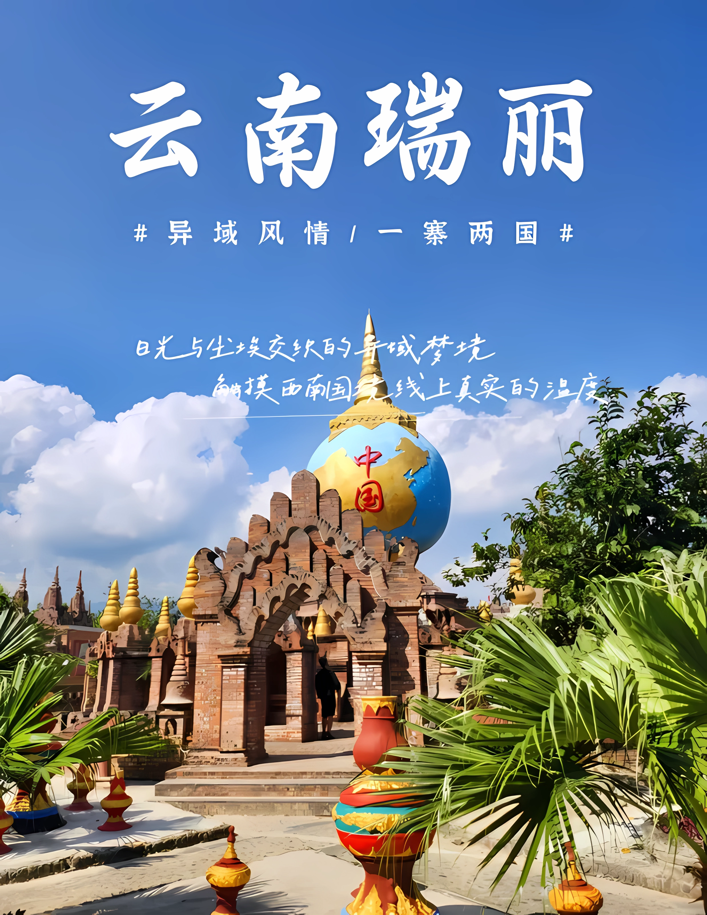 一寨两国是位于云南省瑞丽市中缅边境71号界碑旁的AAAA级景区,国境线将原属同一傣族村寨分为中国银井村与缅甸芒秀村,形成“一寨两国”地理奇观。景区以中缅71号界桩、“一荡两国”秋千、“一井两国”水井、国门胞波书社等为特色景观,两国边民共用水井、共用道路,形成跨境往来的特殊人文生态。适时出发,前往芒市。到达芒市后我们前往芒市【勐焕银塔】,勐焕银塔位于中国云南省德宏傣族景颇族自治州芒市仙池路西200米雷崖让山,是一座以银白色为基调的傣族佛教文化地标,与勐焕金塔遥相呼应,塔高66米、直径46米,整体采用纯白傣银材质打造,象征圣洁庄严。