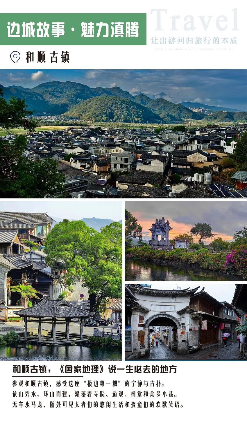 和顺古镇位于云南省腾冲市城区西南4公里处,是一座拥有600多年历史的侨乡古镇。古镇始建于明代,最初因小河绕村而过称为“河顺”,后文人雅士取“士和民顺”之意更名为“和顺”,寓意和谐安康。古镇是西南丝绸之路的必经之地,文化底蕴深厚,融合了中原文化、西洋文化、南诏文化及边地特色,形成了独特的侨乡文化和马帮文化。这里走出了哲学家艾思奇等文化名人,拥有和顺图书馆、大马帮博物馆、双虹桥等众多历史建筑。古镇建筑风格中西合璧,徽派建筑与东南亚元素交融,现存100多所百年宅院、9座牌坊、9座石桥等,被誉为中国古代建筑的“活化石”。