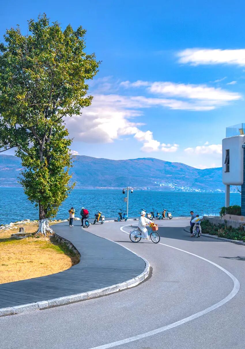 喜州镇是中国西南边疆的历史文化名镇。自古以来就是洱海西岸白族政治、经济、文化集中的重镇,有悠久的经商历史,是白族工商业发展的摇篮,清光绪年间,形成了驰名三迤的 “ 喜州商帮 ” 。孕育了以 “ 严、董、尹、杨 ” 四大家为首和 “ 八中家 ” 、 “ 十二小家 ” 的民族资本家。闻名遐迩的蝴蝶泉坐落其中,中外闻名的电影《五朵金花》就在此拍摄。之后前往洱海网红【磻溪村S弯】。骑上一辆自行车,漫步在洱海边上,来一杯咖啡,静静的感受这云南的慢生活……最后往洱海边上的【双廊古镇】。