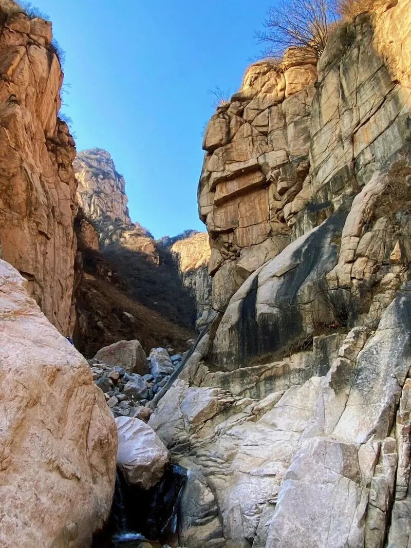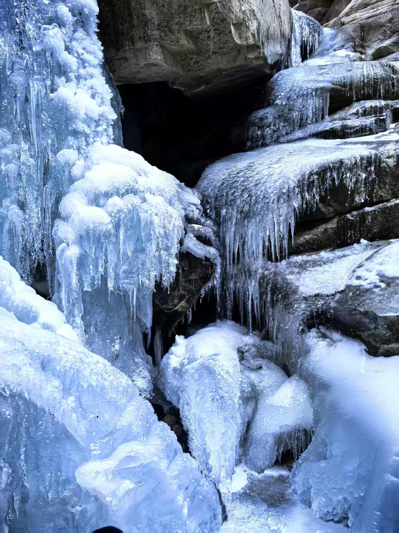 ❀易县寨沟地处太行山脉深处,位于河北省保定市易县桥家河乡,是毗邻省道241的原生态自然峡谷。以冰瀑奇观与静谧深谷勾勒出独特的冬日画卷:峡谷内十余处瀑布在低温下凝结成形态各异的冰瀑,其中“云端瀑布”垂挂百尺冰凌,“迷你水帘洞”的天然岩洞被冰柱封存,阳光折射下偶现彩虹;溪流在巨石间蜿蜒成冰河,与两侧峭壁上的松林、灌木形成“冰瀑、溪流、巨石、松涛”交织的原始景观。沿途可穿越“一线天”地质奇观、登顶后坨草甸俯瞰群山,或探访藏于冰瀑后的隐秘岩洞。作为京津冀地区知名的冬季徒步目的地,寨沟以未被过度开发的野趣、四季分明的地貌变化,成为逃离城市喧嚣、感受太行山冬韵的绝佳选择。