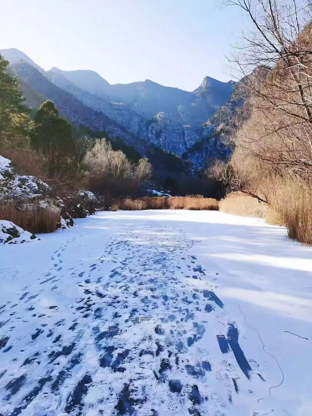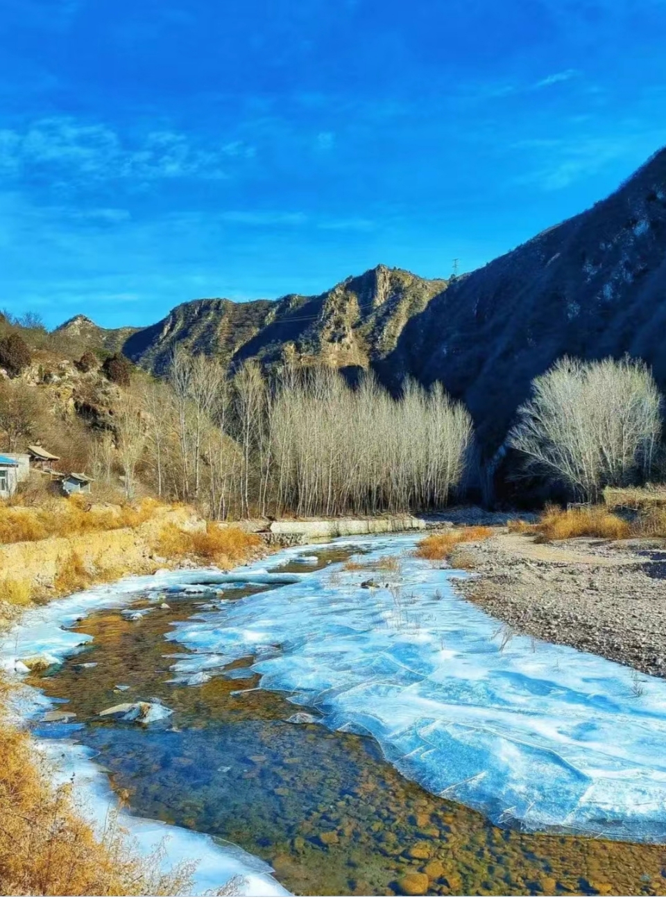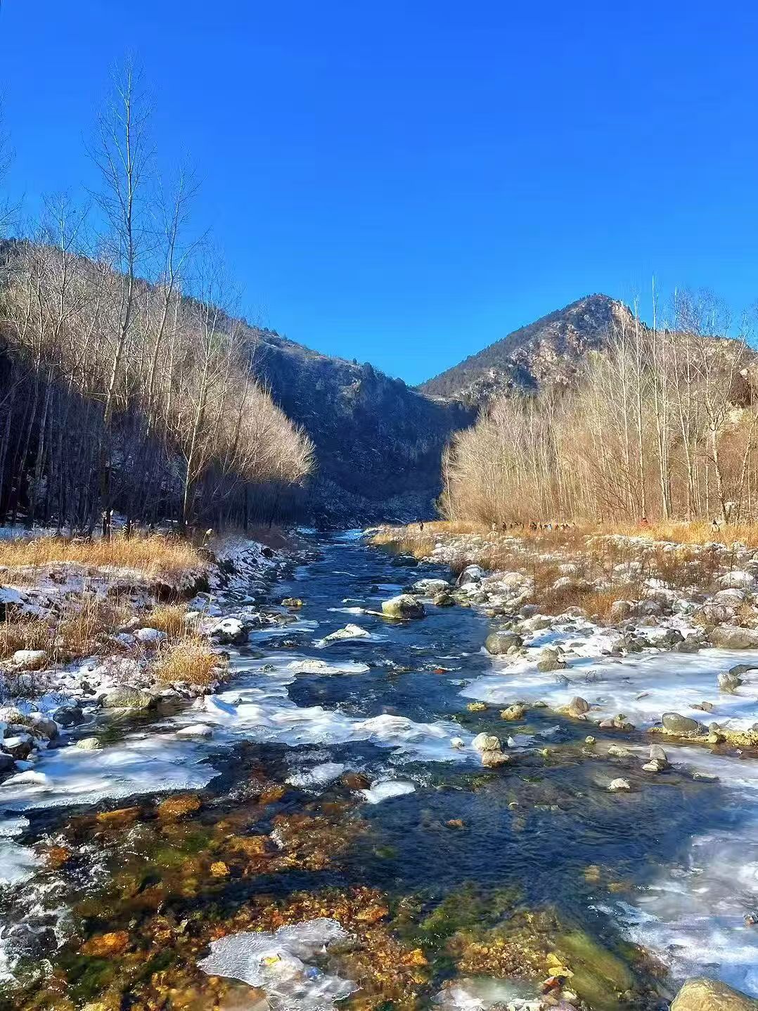 清水河,源自京东第一高峰雾灵山,最终注入密云水库。此处水肥草丰,沿河景色变换多样,杨柳、芦苇、睡莲、深潭、幽谷,极具观赏性,整条路线平整好走,河水丰沛,是冬季徒步踏冰好去处。