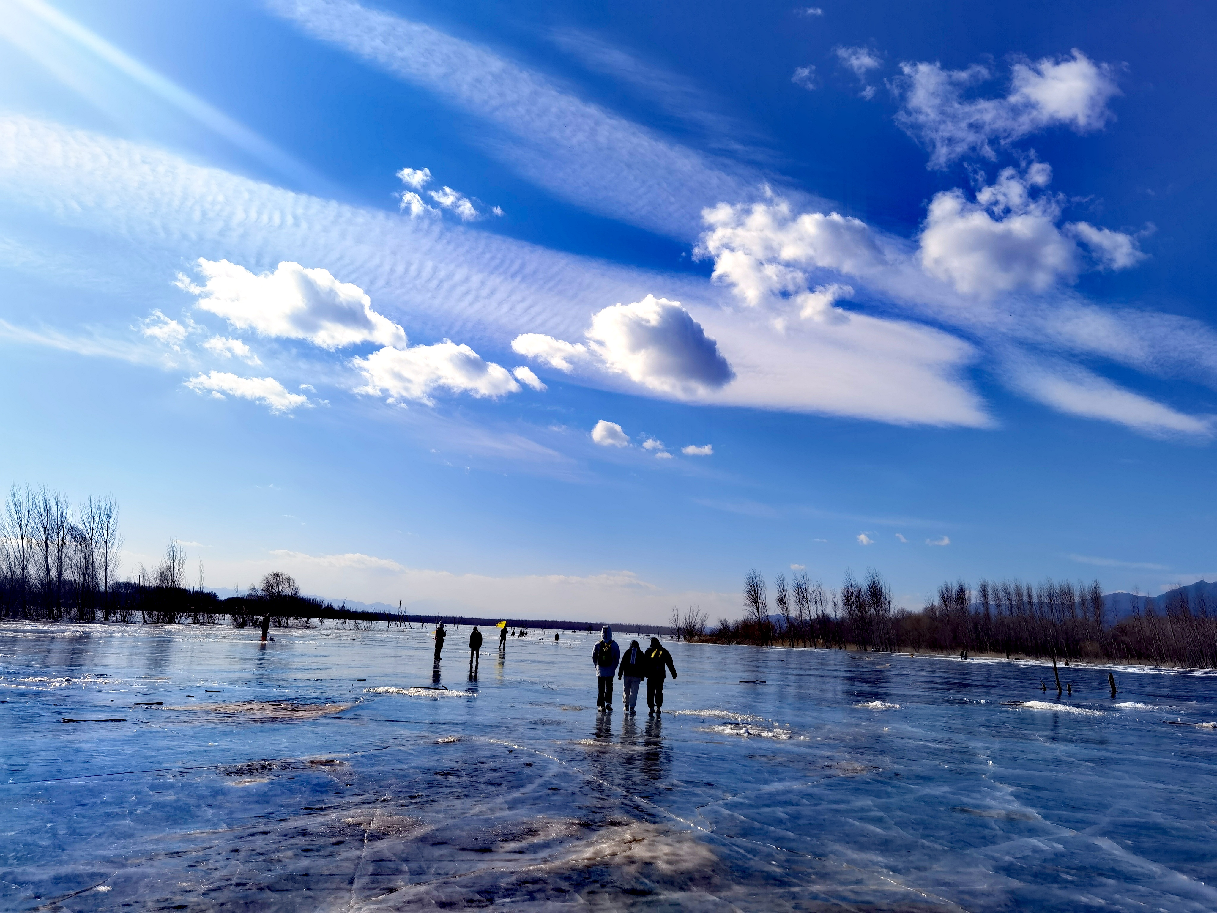 ✿妫水河蜿蜒于延庆大地,作为这片土地的母亲河,它以独特的“逆向奔流”打破常规——自东向西纵贯延庆,最终汇入官厅水库。河面宽阔处达250米,冬季冰封后,冰层如镜面般通透,与远处层峦叠嶂的群山相映成趣,待到暮色四合,妫水河的日落更添一抹温柔与壮美。夕阳如熔金般倾泻在冰面上,将整条河染成橙红与绛紫交织的画卷。堪称京郊踏冰的绝佳秘境。