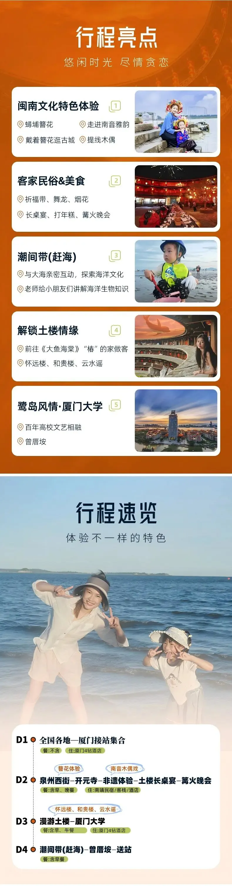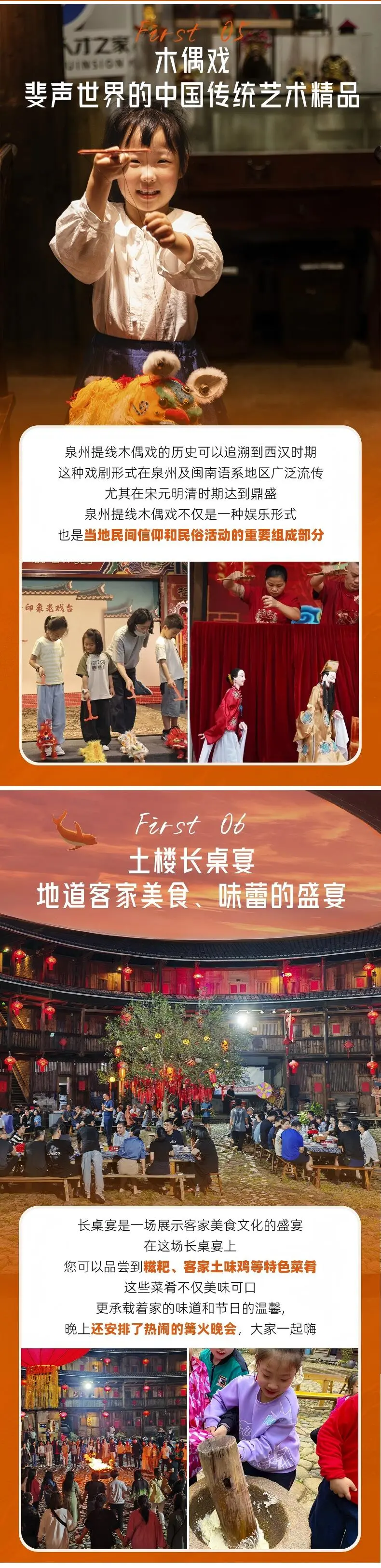西街→南音/木偶戏→土楼长桌宴→篝火晚会