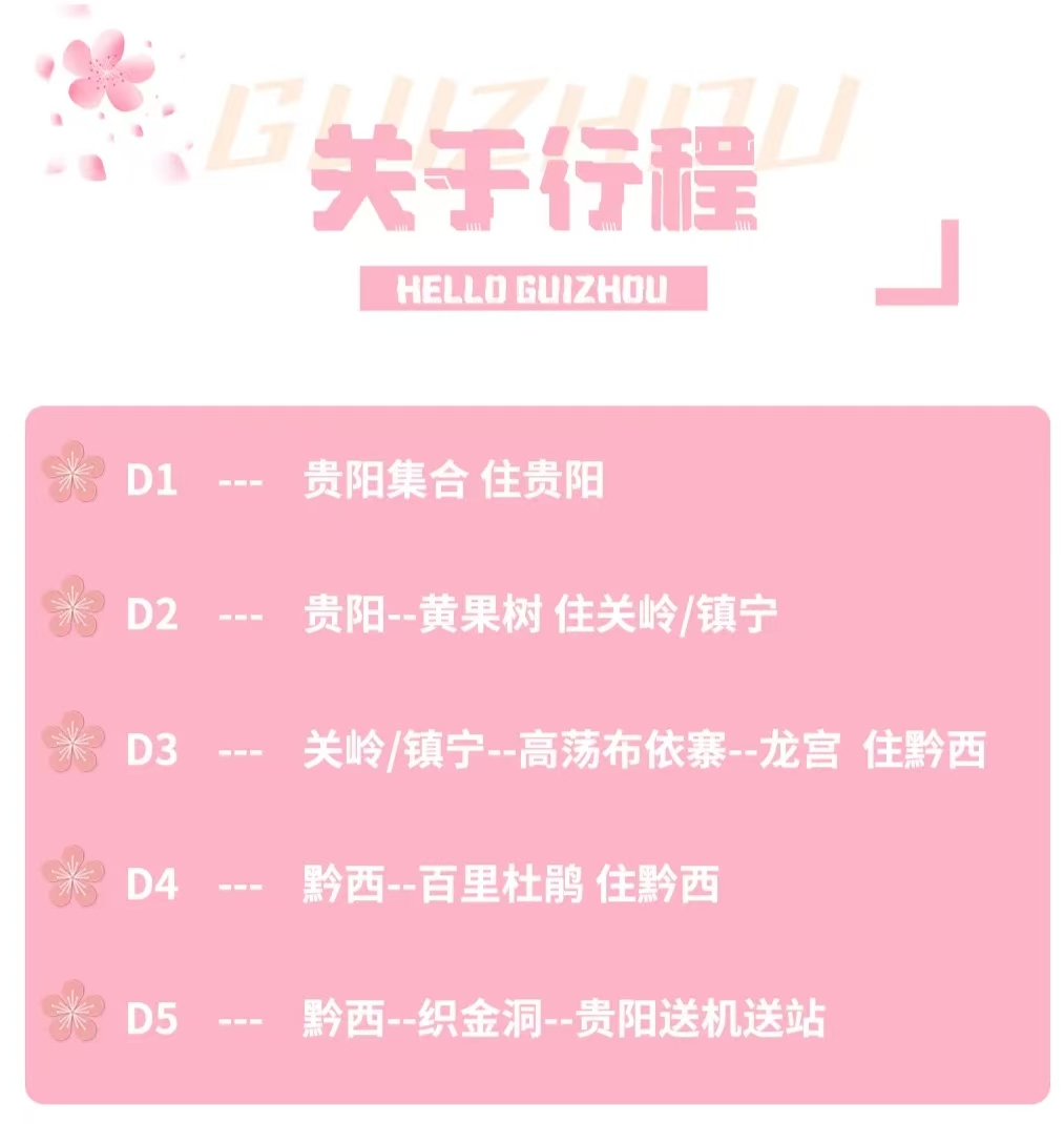 *说明:返程大交通:贵阳返程机票建议17:00后,高铁动车 16:30后。