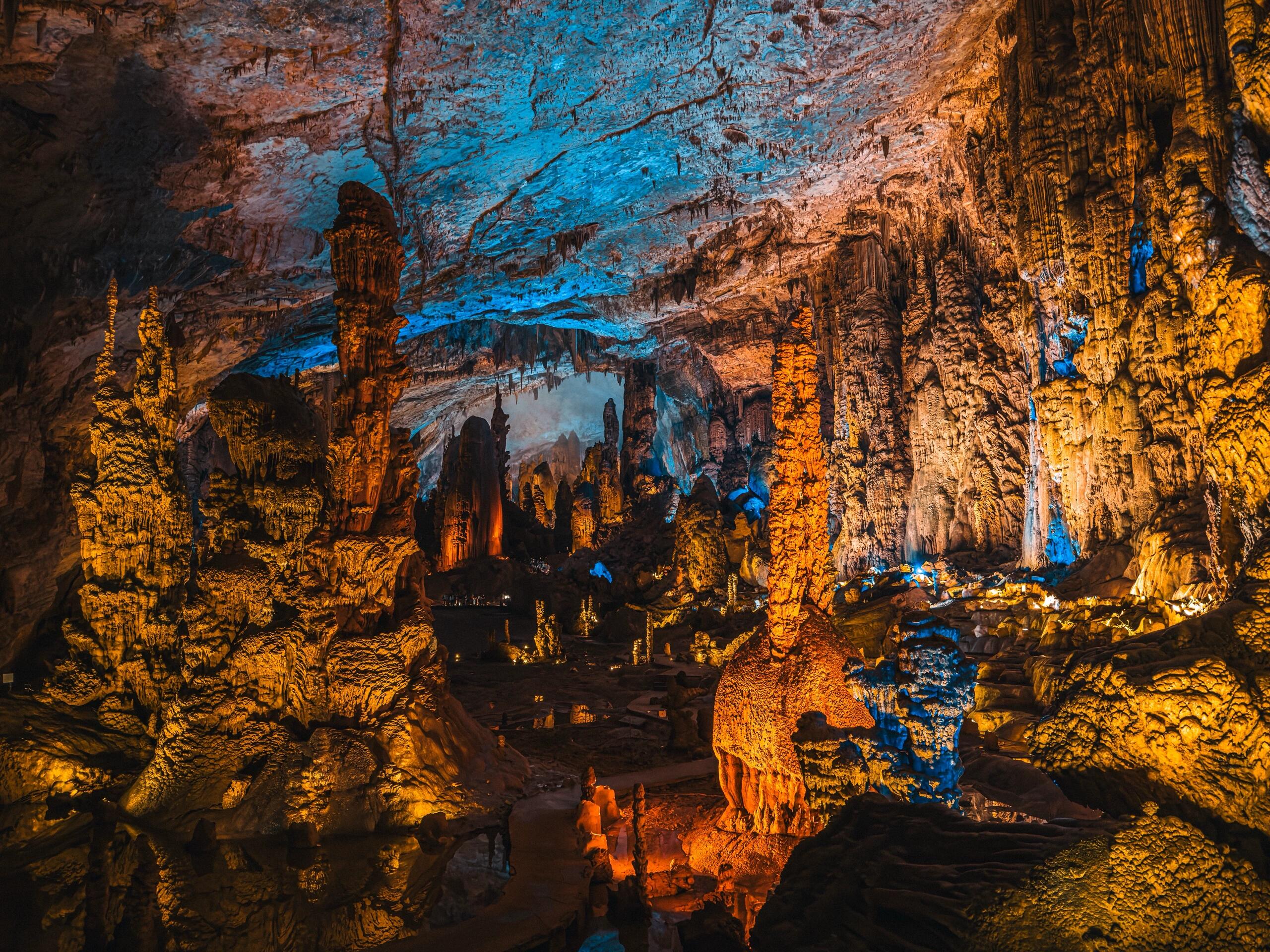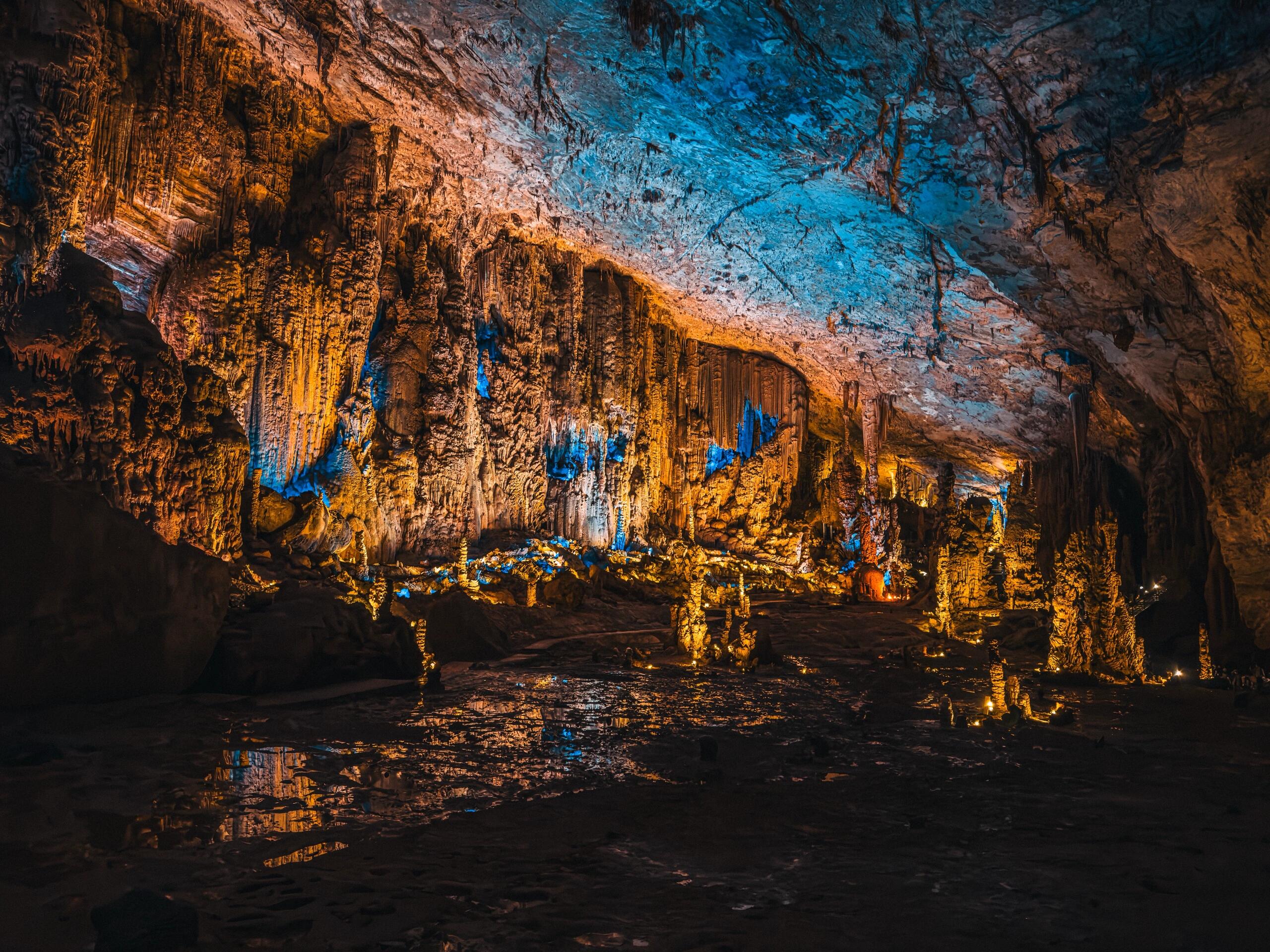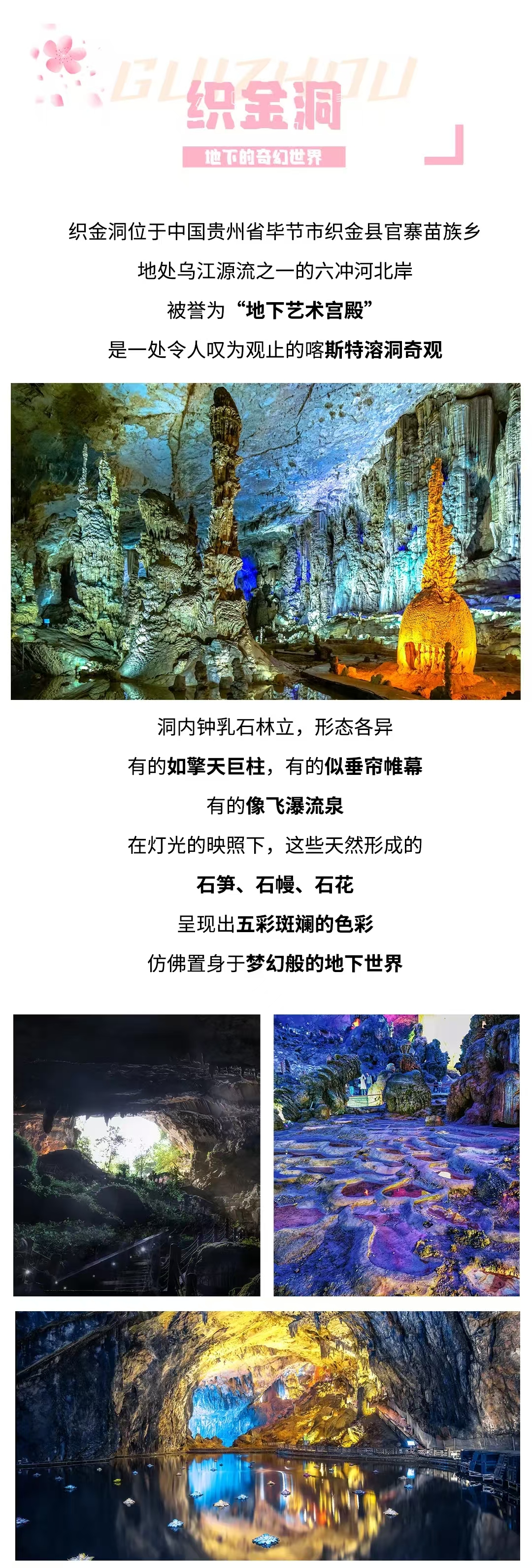 早餐后前往织金洞景区,一下车,清新的空气便扑面而来。沿着蜿蜒的步道走向洞口,周边绿树成荫,虫鸣鸟叫,营造出一种神秘的氛围。走进织金洞,仿佛踏入了一个奇幻的地下世界。五彩斑斓的灯光照亮了整个洞穴,形态各异的钟乳石从洞顶垂下,有的像利剑直插地面,有的像仙女亭亭玉立,还有的像各种动物栩栩如生。最为震撼的当属“银雨树”,它洁白晶莹,纤细的树干支撑着繁茂的“树冠”,宛如一棵盛开的玉树,在灯光的映照下熠熠生辉。“霸王盔”则气势磅礴,巨大的盔顶和流畅的盔缨,仿佛让人看到了一位威风凛凛的将军。继续前行,“灵芝山”映入眼帘,层层叠叠的钟乳石宛如巨大的灵芝,充满了神秘的气息。在游览过程中,一定要注意脚下,因为洞内道路湿滑,且地面有些崎岖不平。同时,也要遵守景区规定,禁止使用闪光灯拍照,以免对这些珍贵的地质景观造成损害 。