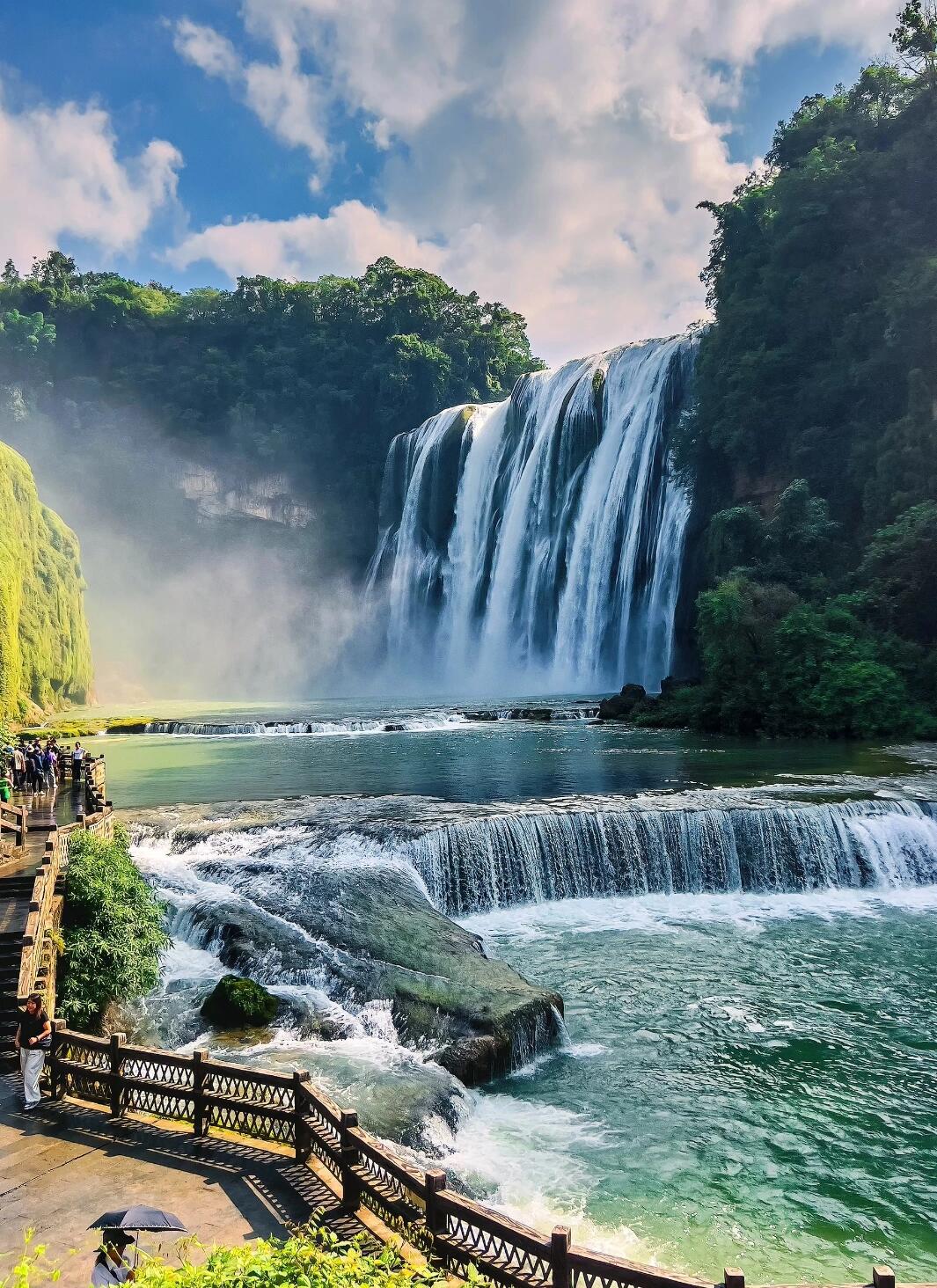 早餐后乘车前往黄果树景区,黄果树分为【陡坡塘】、【天星桥】、【黄果树大瀑布】三个景点,【天星桥】位于黄果树大瀑布下游,这里主要是天然盆集石、树、山、水、林、洞为一体,我们会特别带您领略天星桥最亮丽的风景段,天星洞、水上石林、银涟坠潭瀑布,到处飞瀑倾泻,泉水喷涌。随后前往瀑布群最宽的【陡坡塘瀑布】,这里也是唐僧师徒四人取经的必经之地,陡坡塘瀑布还有一个特殊的现象:1983年版西游记片尾曲拍摄地带您追忆唐僧师徒四人取经的经典,最后游览【黄果树大瀑布】,瀑布高度为77.8米,宽101米,汹涌澎湃的河水直泄腾起水珠形成水帘,您可以在观景台寻找大瀑布最美的角度按下快门,用照片来绘出它的气势磅礴之美。这个时节出行我们可以看到最秀美的黄果树瀑布,碧绿的水,潺潺而下的瀑布,别有一番景色。