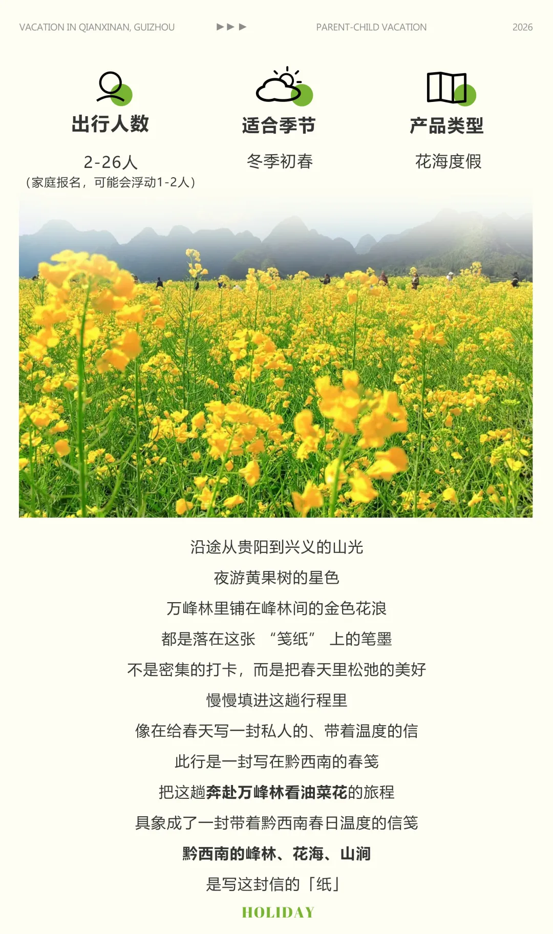 (春节)【第1029期休闲·花海春笺·已成行】(2月19日-2月23日)贵州黔西南(黄果树→花江村→万峰林花海)花海漫游5日活动