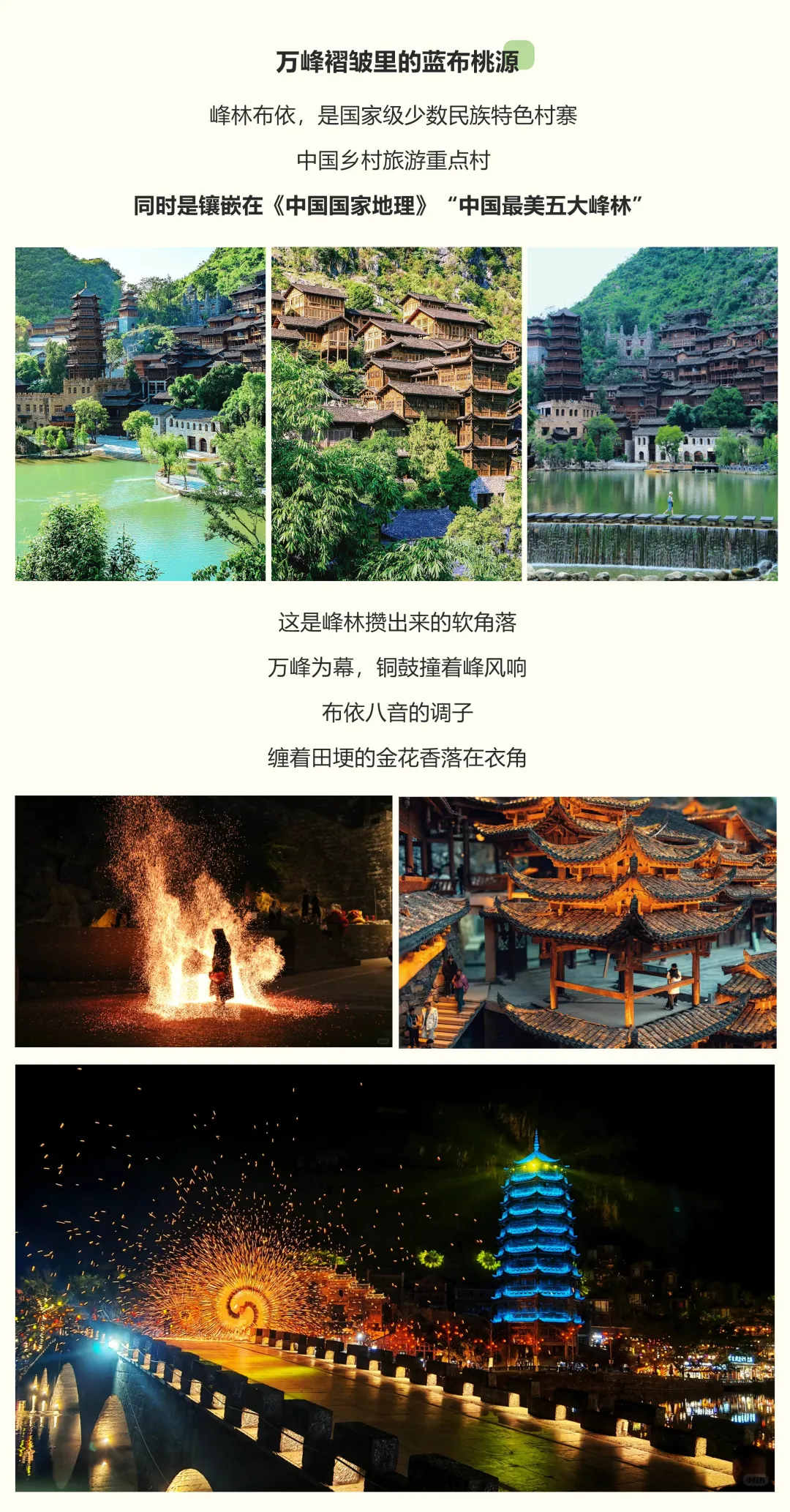 4)【景点】青岩古镇大门票,夜游黄果树门票及电瓶车,马岭河门票,万峰林门票及电瓶车,万峰湖船票,峰林布依门票及电瓶车;