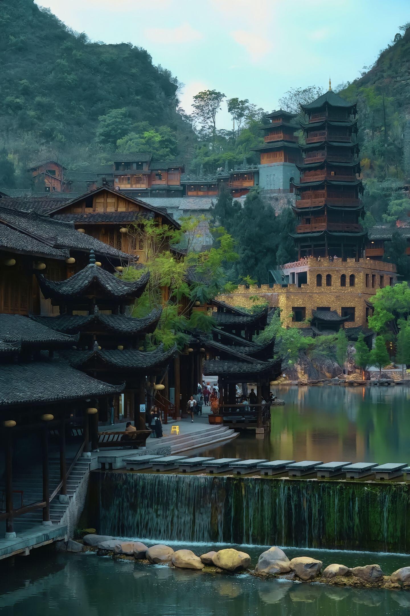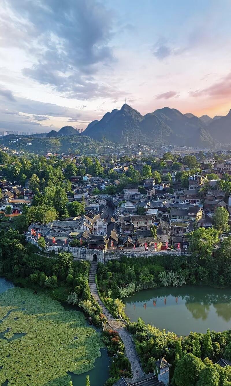 青岩古镇建于明洪武十一年(1378年),至今有六百多年历史,素有“南部要塞”之称。它原为军事屯堡,后逐渐发展为军民杂居的村落,历经多次扩建,土城墙改为石墙,成为易守难攻的军事重镇。古镇依山而建,街巷用石铺砌,民居多为石砌围墙、木柱木板结构,屋面是青石片瓦和青色布瓦,沿袭明、清建筑风格。走进青岩古镇,仿佛踏入了历史的长河。沿着青石铺就的街巷前行,两旁是古色古香的明清建筑。漫步背街,触摸古老的石墙,感受岁月的痕迹。再登上定广门,俯瞰古镇全貌和周边的山水风光。游玩过程中,别忘了品尝当地的特色美食,如卤猪脚、糕粑稀饭、豆腐圆子等。