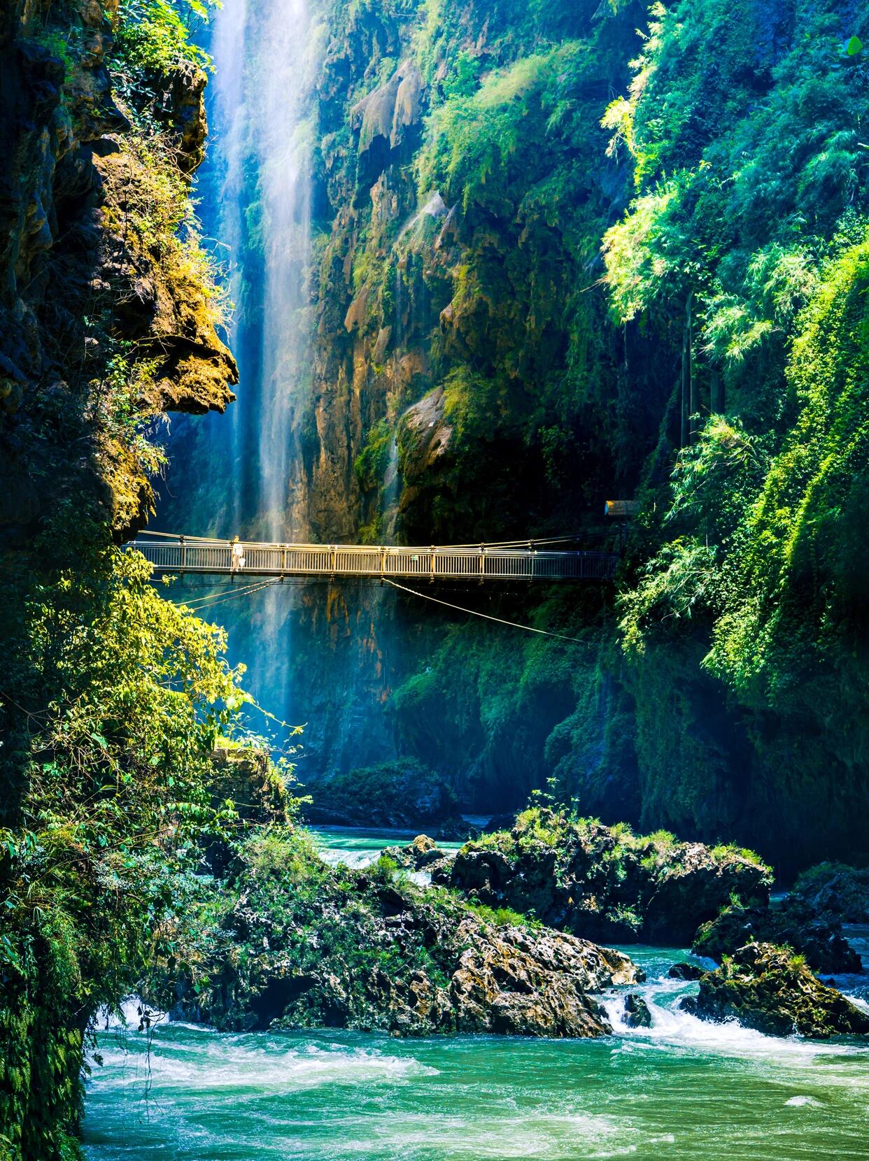 早餐后将前往【马岭河峡谷】这里被喻为“地球上最美丽的疤痕”。如果用地质学的手术刀去解刨,可见喀斯特多层次的地貌一一地缝、峡谷、瀑布、河流和碳酸钙壁挂。马岭河峡谷长约15公里,是喀斯特多层次地貌景观的典型代表,以地缝嶂谷、群瀑悬练、钙华壁挂而著名,《中国国家地理》将之列为中国瀑布最多的峡谷。峡谷中间有两座吊桥,我们将沿着谷底的古驿道徒步游览,路瀑布相伴,经过落差大、规模大的瀑布,耳边便轰隆作响,水流自顶峰极速奔腾,如怒潮狂涌。伴着震耳欲聋的水声,飞瀑中喷溅出来的小水珠细如烟尘弥漫于空气之中,清凉感随之而来,水汽氤氲间让人仿若处于仙境。