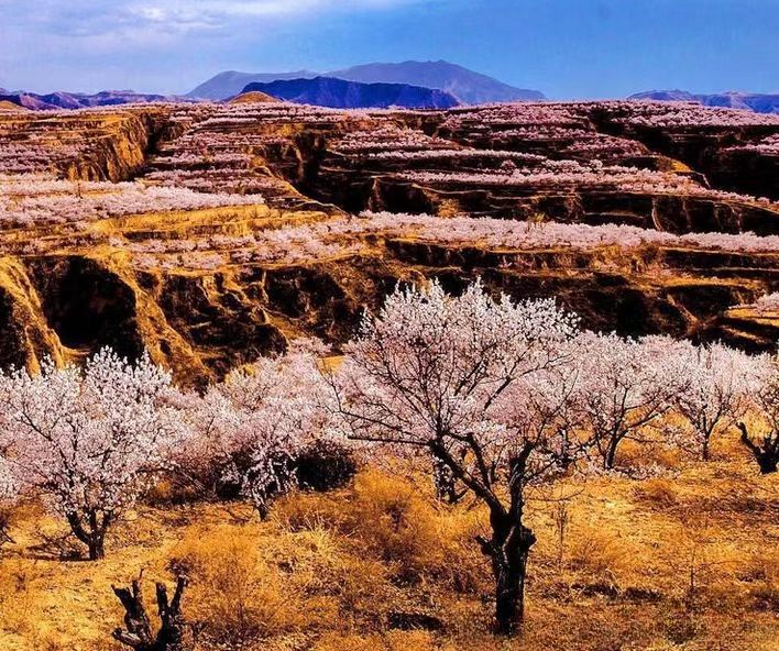 【第1068期·休闲徒步】(4月12日·周日)黄土高坡赏杏花穿越(千树杏花春意闹,黄土坡头花似潮)一日路线