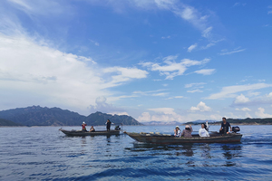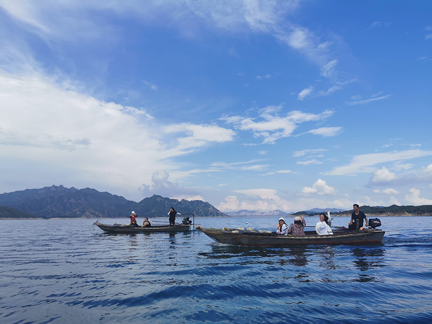 朝阳初升,车队载满欢声,沿山野公路车轮碾过京郊渐醒的春色,直至河北小桂林的轮廓自地平线升起。停驻湖畔停车场,到达目的地,集体换乘小船前往湖中岛屿,同样我们丰富的烧烤物资也随之上岛了!