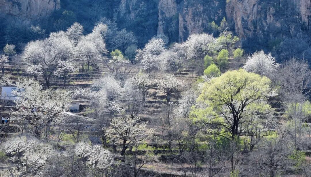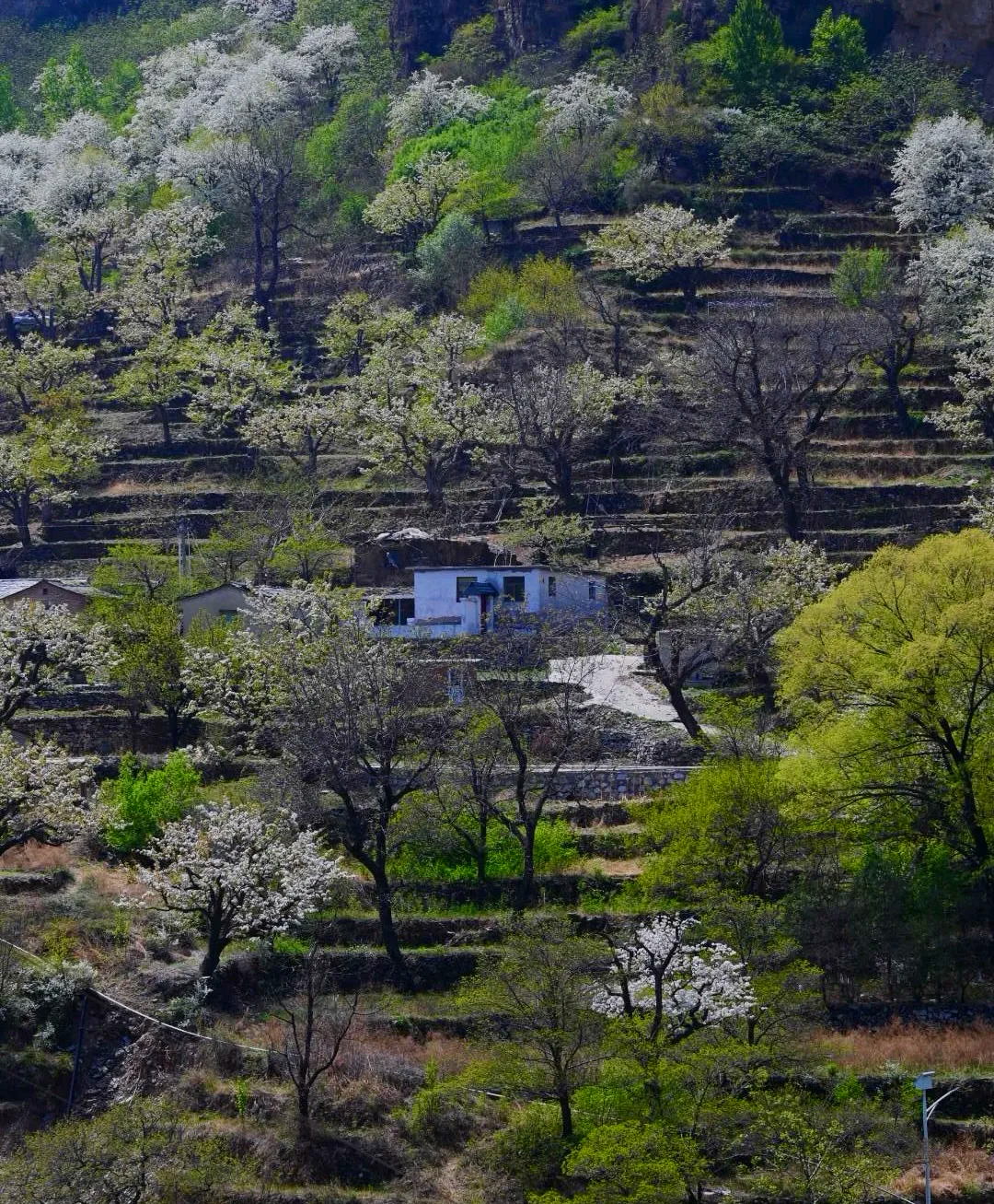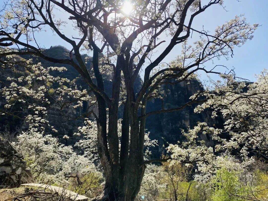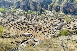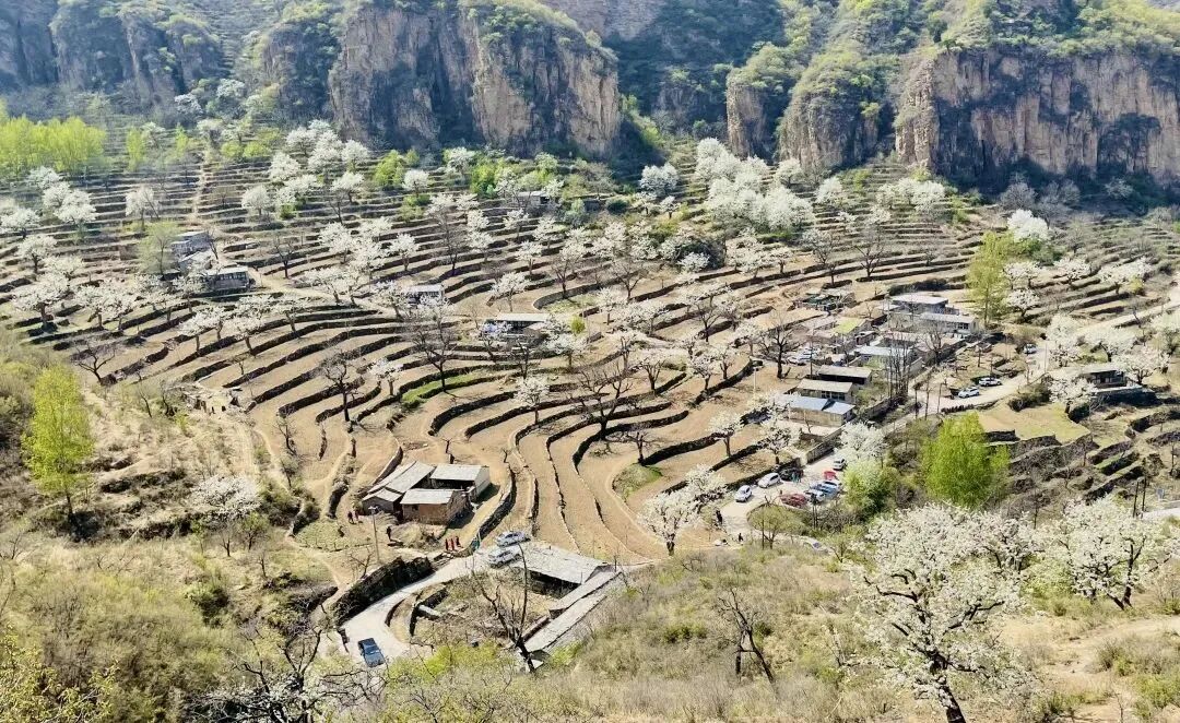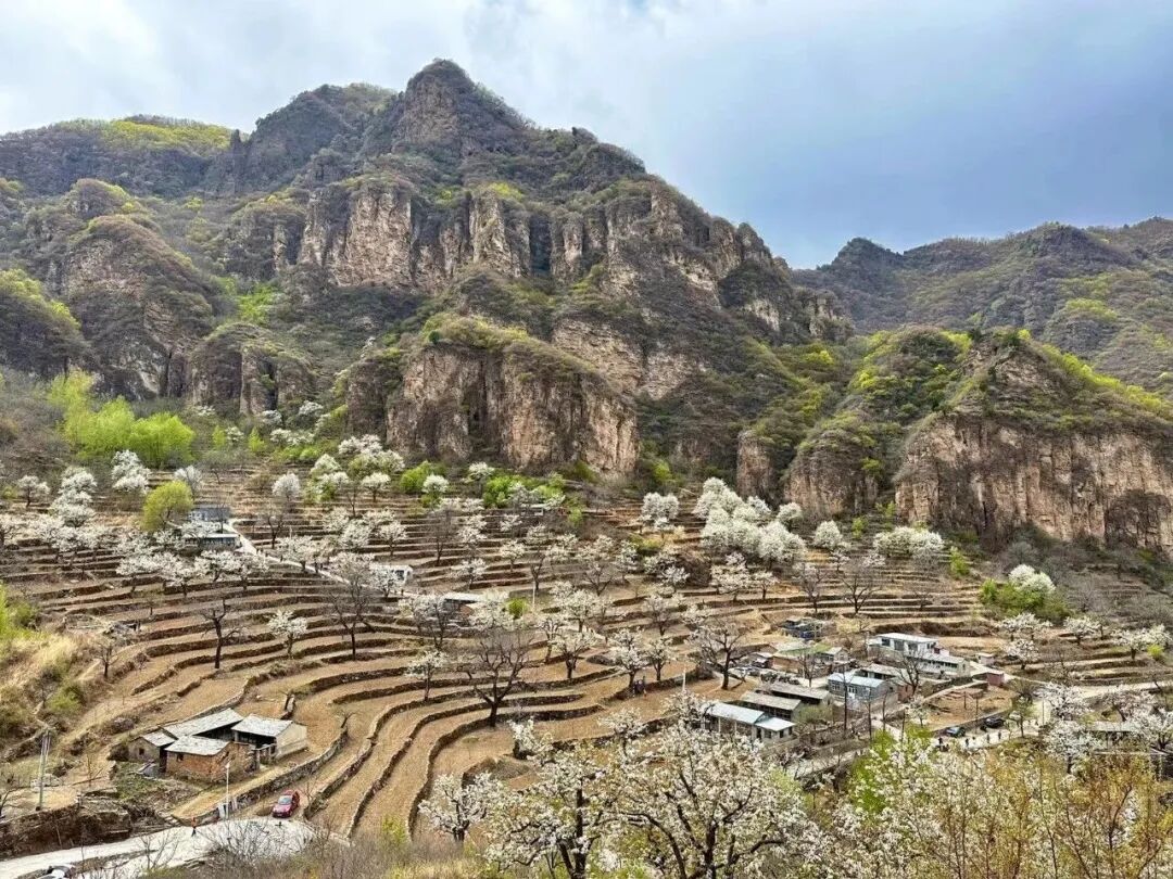 大滩村位于北京房山霞云岭,四周高山环抱,中间谷地狭窄,这里远离喧嚣,空气清新。这个京西大山深处的偏僻山村,梯田种满有千树梨花,美如仙境,与世隔绝,遗世独立,一片古老而原始的神韵。大滩村最美的就是梯田、梨花、老屋和石板路。层层梯田,依山而落,小路蜿蜒,几间自建的屋舍坐落其间,宁静安逸,待梨花盛放时节,当真是“世外桃源”了。