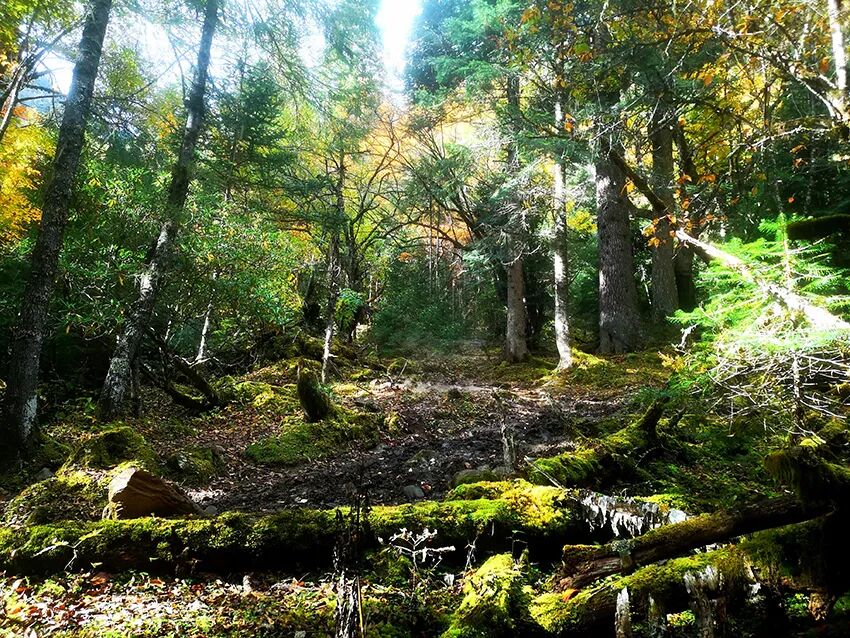 早餐后,从住宿地出发,经高海拔原始森林及杜鹃丛林,徒步将近2小时后翻过海拔3900米的上那笑农垭口,直至雨崩河河底,随后穿过一片原始松树林,约1小时后抵达海拔3600米的中日联合登山队“笑农大本营”。