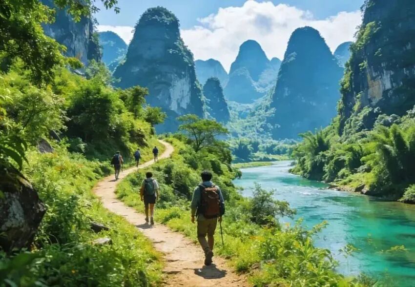 1、今日徒步约12公里,沿漓江江边徒步,风景绝佳。上升130米,下降350米,儿童都可正常完成,放心徒步。