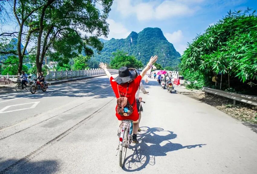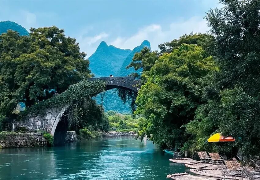 早餐后出发前往游玩遇龙河竹筏,乘竹筏游桂林,快乐的时光都是属于你自己的。遇龙河竹筏游玩是体验桂林山水精华的核心方式。以平缓、宁静著称,能让游客沉浸于水墨画卷般的自然风光中。两岸喀斯特山峰形态各异,河畔翠竹叠嶂,水面清澈如镜,倒映着蓝天白云与青山,构成一幅流动的山水画卷。在春、夏季水量充沛时,竹筏可从数米高的坝上冲下,带来“有惊无险”的独特体验。之后赴十里画廊景区,换乘单车骑行十里画廊。骑行十里画廊是游览阳朔山水风光的经典方式,沿途景观如画卷般展开,融合了自然风光与人文体验。中午享用十里画廊村落美食。最后乘车返回,先送至桂林两江机场,再送至桂林北站,活动结束。如果今天时间充裕,领队依然会给大家加量不加价:走,遇龙桥上走一走!阳朔遇龙桥是广西桂林阳朔县一处融合了自然风光、人文历史与休闲体验的标志性景点。这座始建于明代的单拱石桥,历经风雨依然稳固,桥身藤蔓缠绕,古朴沧桑。其名称源于古老的民间传说,寓意人与自然的和谐相遇,已成为当地重要的文化符号。