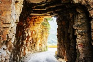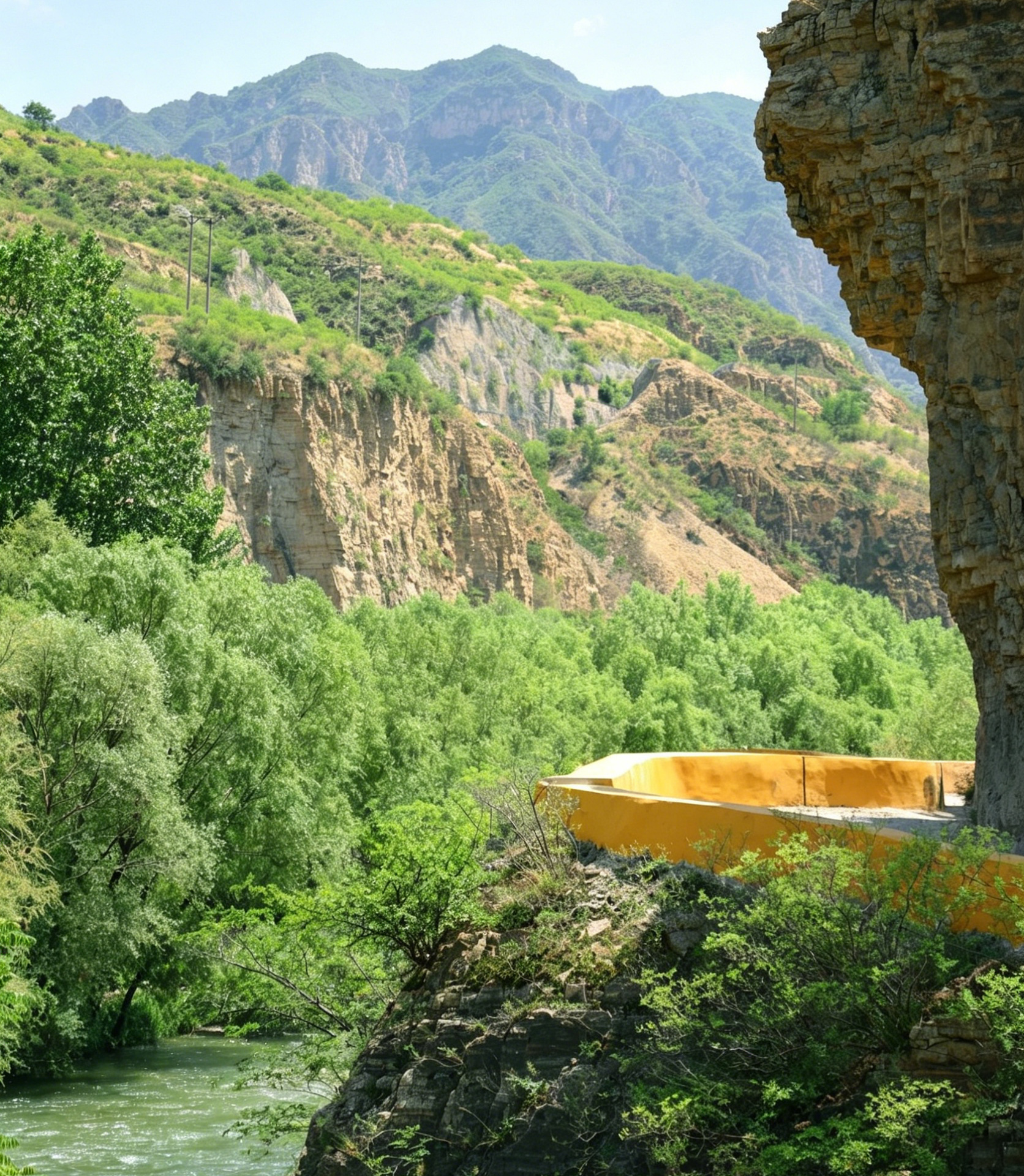 幽州大峡谷,又称“官厅山峡”、“永定河峡谷”,幽州挂壁公路,全长约30公里,位于永定河畔,穿梭于幽州峡谷,镶嵌在太行山峭壁上的姊妹,险峻而神秘。公路开凿于半山腰,沿途的山洞隧道无数,外壁开有多个透光窗口,通过窗口,可以看到河畔和幽州大峡谷的美景。