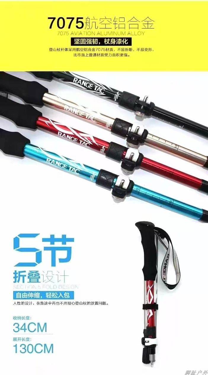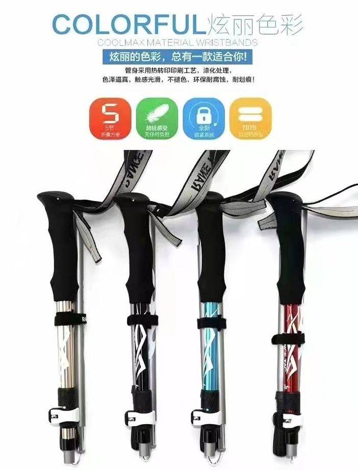 折叠登山杖 新品促销五节铝合金伸缩外锁登山手杖